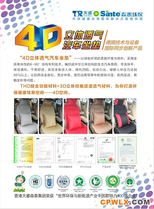 “4D立体透气汽车坐垫”--德国技术与设备、国际同步创新产品